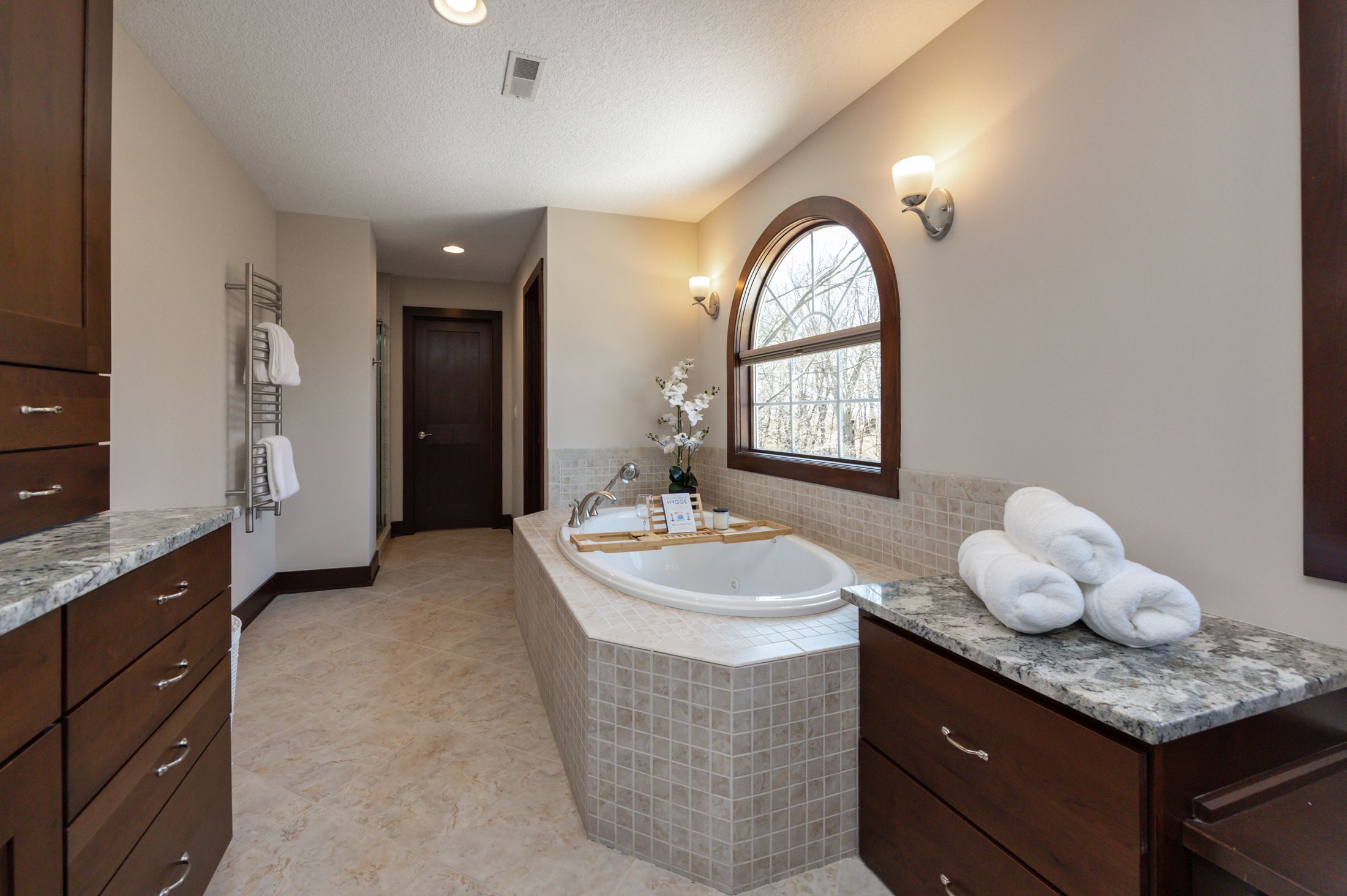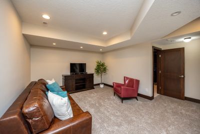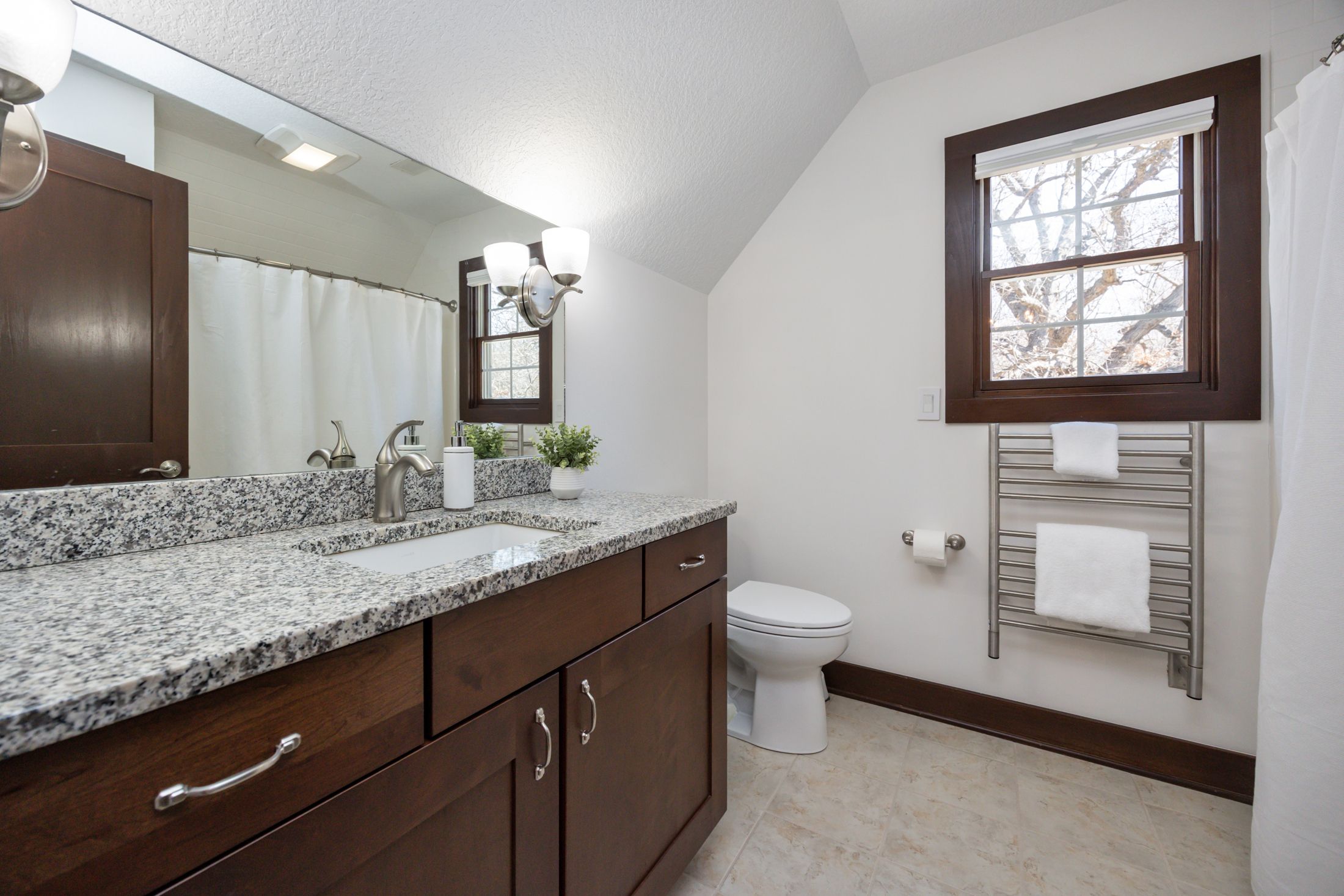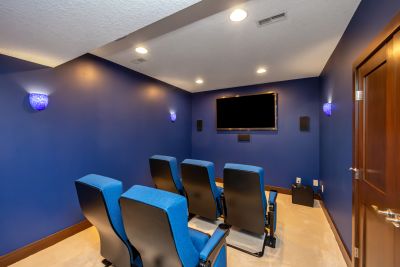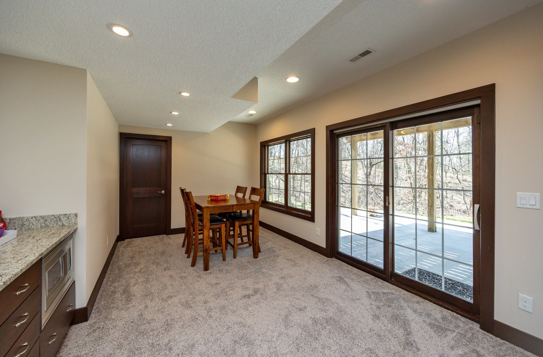 The kitchen offers high-end finishes, a generous eat-in area, and opens to a charming sunroom that connects to the oversized deck—ideal for enjoying the surrounding nature. A convenient half bath and laundry room complete the main floor. Upstairs, you'll find four large bedrooms and three full bathrooms, including a luxurious primary suite with spa-like bathroom with dual vanities, a jetted tub, tiled walk-in shower, heated towel bar, and a spacious walk-in closet. The walkout lower level boasts a family room with wet bar and a dedicated theater room—complete with theater equipment and eight reclining seats—for the ultimate movie night experience. Located in a premier subdivision, this home offers the tranquility of acreage living with the convenience of being close to schools, shopping, dining, and more. Easy access to the High Trestle Trail and Neal Smith Trail!