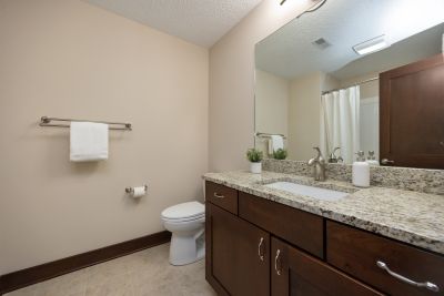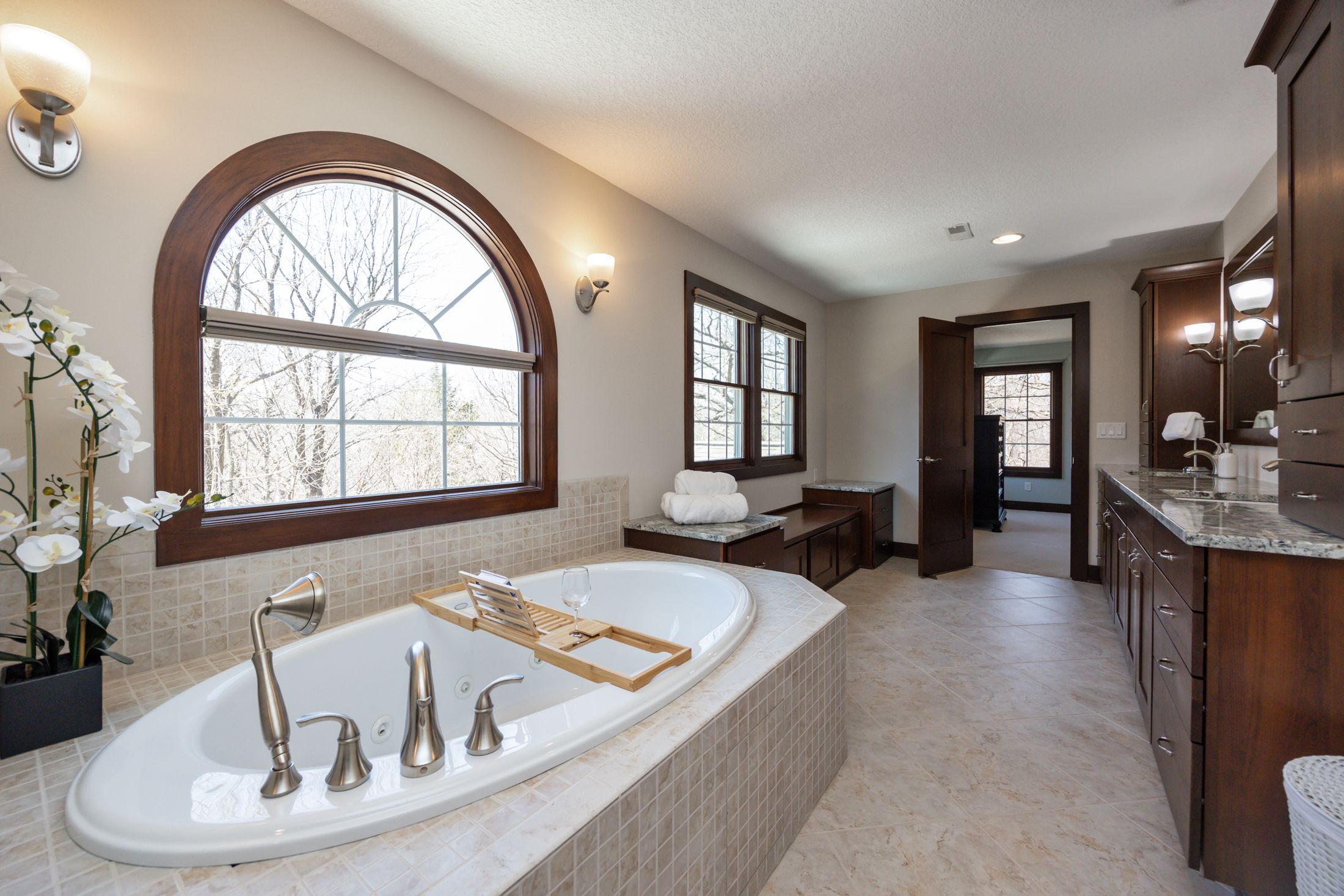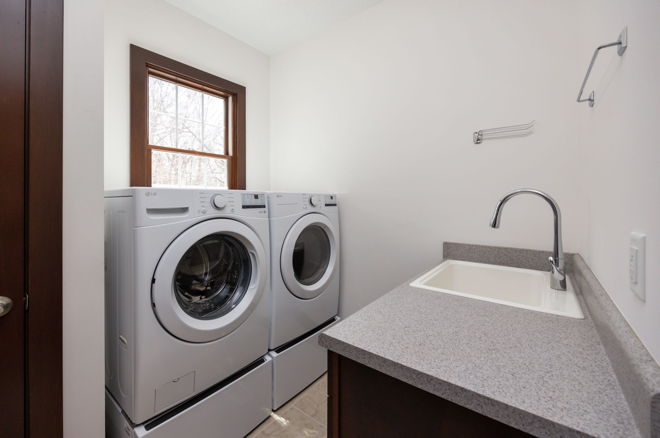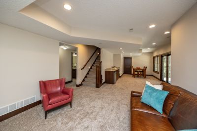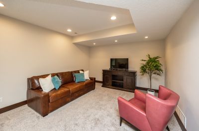 The kitchen offers high-end finishes, a generous eat-in area, and opens to a charming sunroom that connects to the oversized deck—ideal for enjoying the surrounding nature. A convenient half bath and laundry room complete the main floor. Upstairs, you'll find four large bedrooms and three full bathrooms, including a luxurious primary suite with spa-like bathroom with dual vanities, a jetted tub, tiled walk-in shower, heated towel bar, and a spacious walk-in closet. The walkout lower level boasts a family room with wet bar and a dedicated theater room—complete with theater equipment and eight reclining seats—for the ultimate movie night experience. Located in a premier subdivision, this home offers the tranquility of acreage living with the convenience of being close to schools, shopping, dining, and more. Easy access to the High Trestle Trail and Neal Smith Trail!