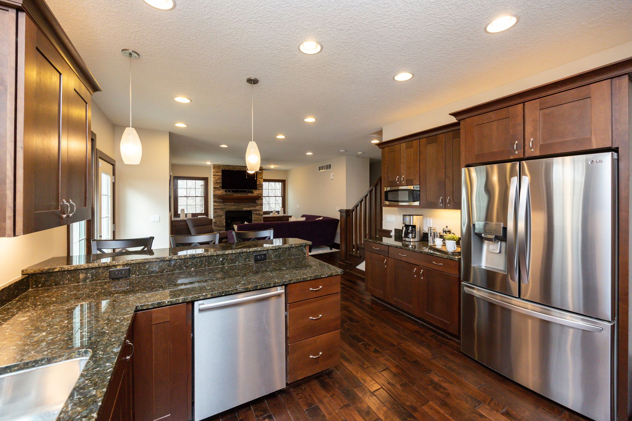 Tucked away at the end of a quiet cul-de-sac on a picturesque 2.5-acre lot, 3085 NW 74th Avenue offers a rare blend of privacy, space, and elegance—just minutes from all the amenities Ankeny has to offer. This stunning 4-bedroom, 4.5-bathroom craftsman-style two-story home features nearly 4,000 square feet of finished living space. A winding private drive leads you to the home, which sits peacefully overlooking a stocked pond—perfect for serene mornings and quiet evenings. You will love all the wildlife: deer, turkey, heron, fox, wood ducks, turtles, many birds and waterfowl varieties and a stocked pond. Inside, the main level is designed for both everyday living and entertaining, featuring a formal dining room, home office, and a spacious great room with a wood burning fireplace.